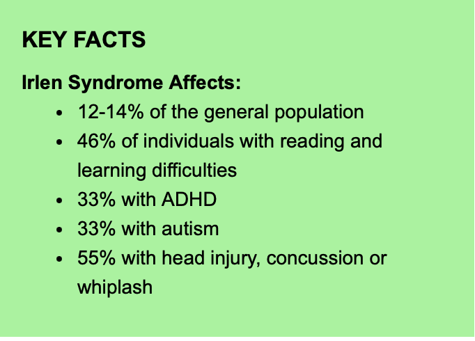 This problem can manifest itself differently for each individual. This problem is not remediable and is often a lifetime barrier to learning and performance. If you suffer from any of the following, Irlen Syndrome might be your problem: